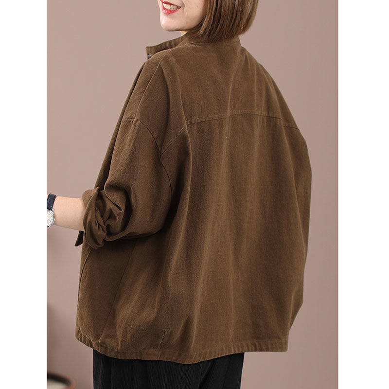 レトロな工装の短いコートの女性2024春秋の新しい韓国版長袖の文芸風の大きいサイズはゆったりしていてやせている上着を現します。
