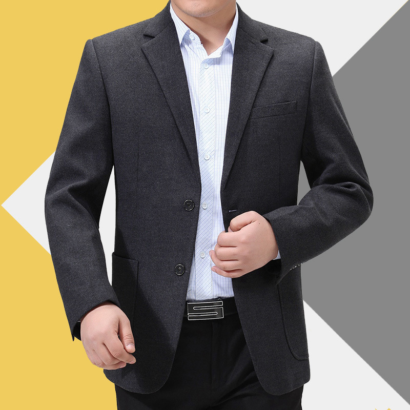 秋冬タイプの中年男性スーツビジネスカジュアル中高年のお父さんはスーツのコートを着てゆったりしています。