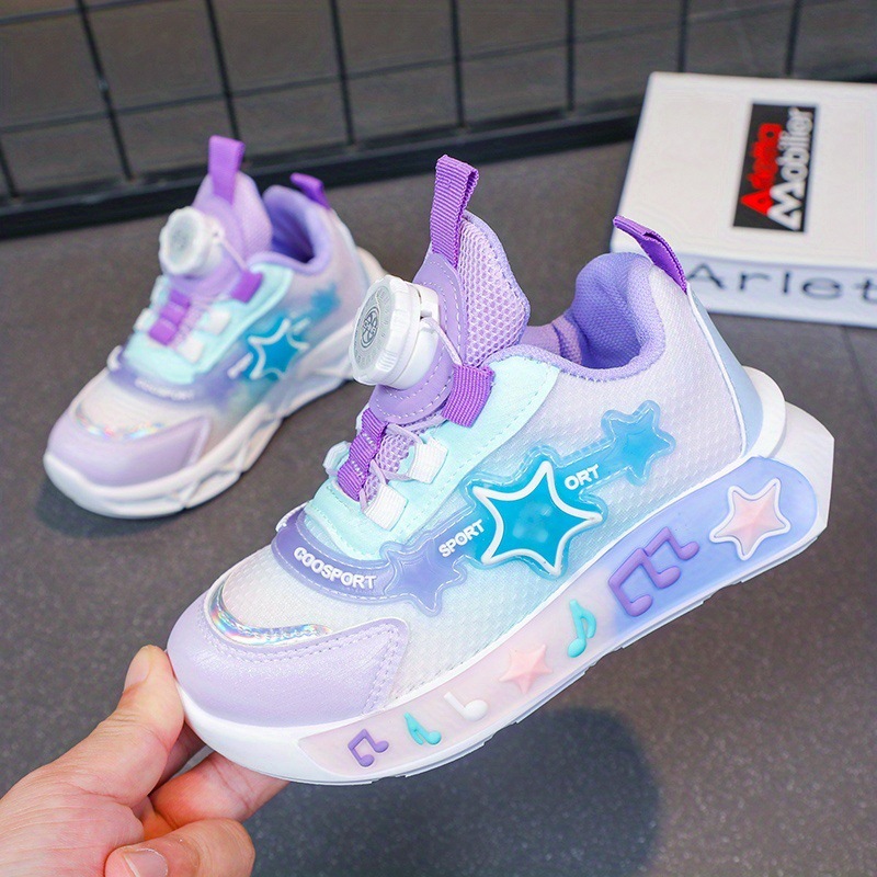 女の子の子供靴春秋新型子供運動靴ネットのお父さんの靴の女の子はボタンを回転して走って明かりをつけます。
