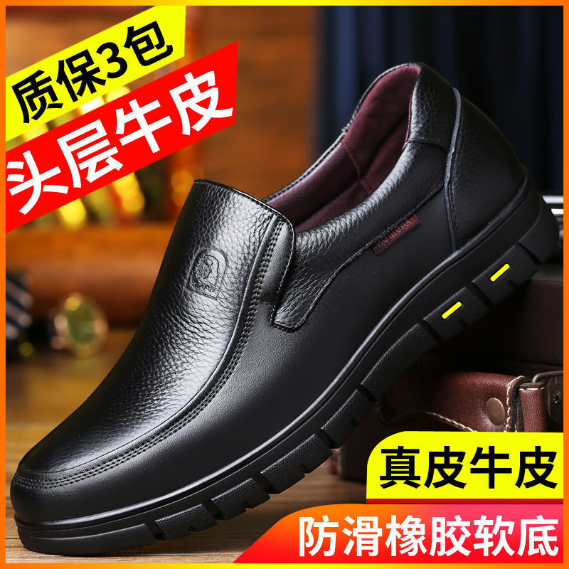 革靴メンズ本革ビジネス秋カジュアル中高年牛革ソフトボトム黒通気滑り止めお父さん男靴