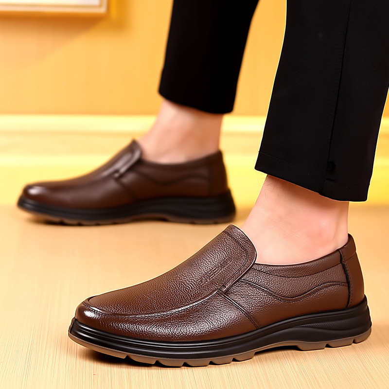 2024年の新型本革カジュアル革靴男性の通気性が柔らかい底の中の高齢者のお父さんの靴は足で滑り止めの靴を踏んでいます。