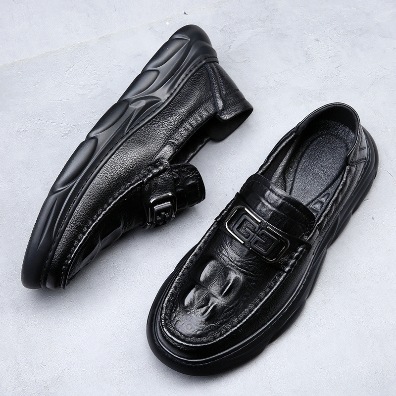 靴男春夏快適頭層牛皮豆靴通気一足男性ビジネス高級カジュアル靴