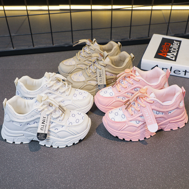 子供の運動靴の男の子の子供靴2023夏の新型の女の子のネットの透かし彫りのネットの靴の中で大きい子供の通気性のお父さんの靴