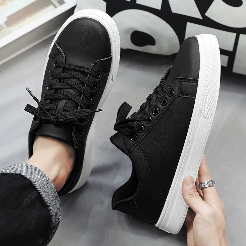 男性の靴春秋の新型の通気性の小さい白の靴の厚い底の黒い板の靴の百合の仕事の防水の滑り止めの純粋な黒の靴の男性