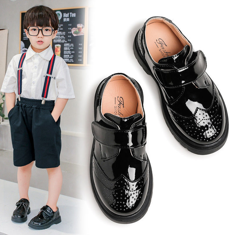 【学校のオススメ靴】子供の演技靴春秋新作英倫風男児の中の子供の牛革豆の靴