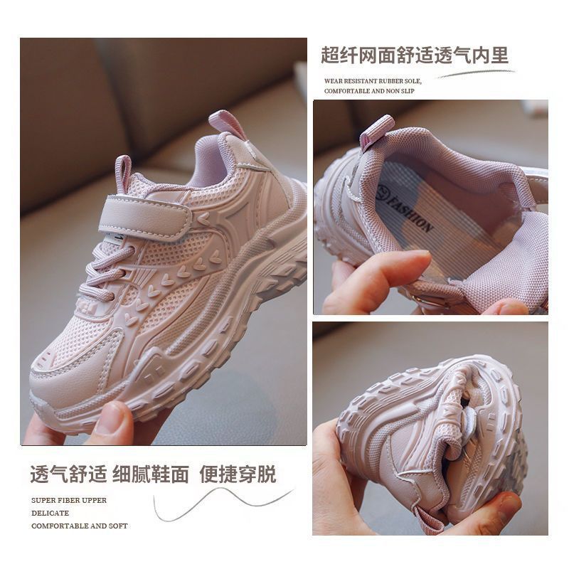 女の子の子供靴の子供の運動靴2024春の新型のお父さんの靴春と秋の通気ネットの中の大きい子供のレジャーの靴