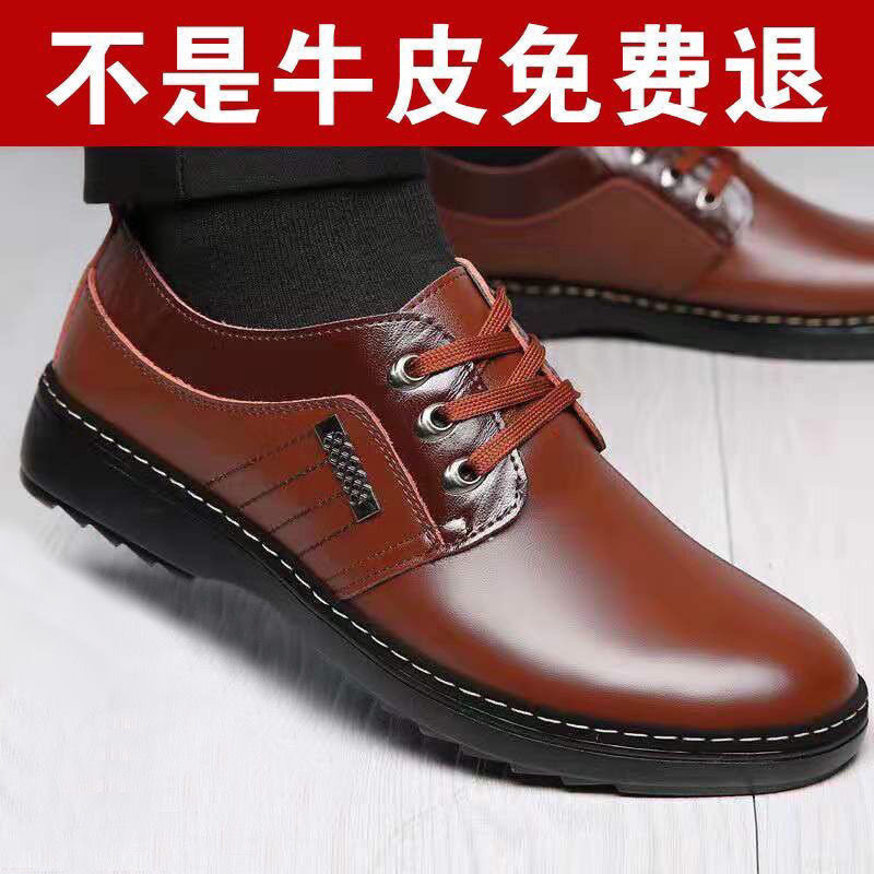 本革牛革カジュアル革靴メンズ秋通気性ソフトボトムブラックビジネスファッションラウンドヘッドお父さん靴メンズ