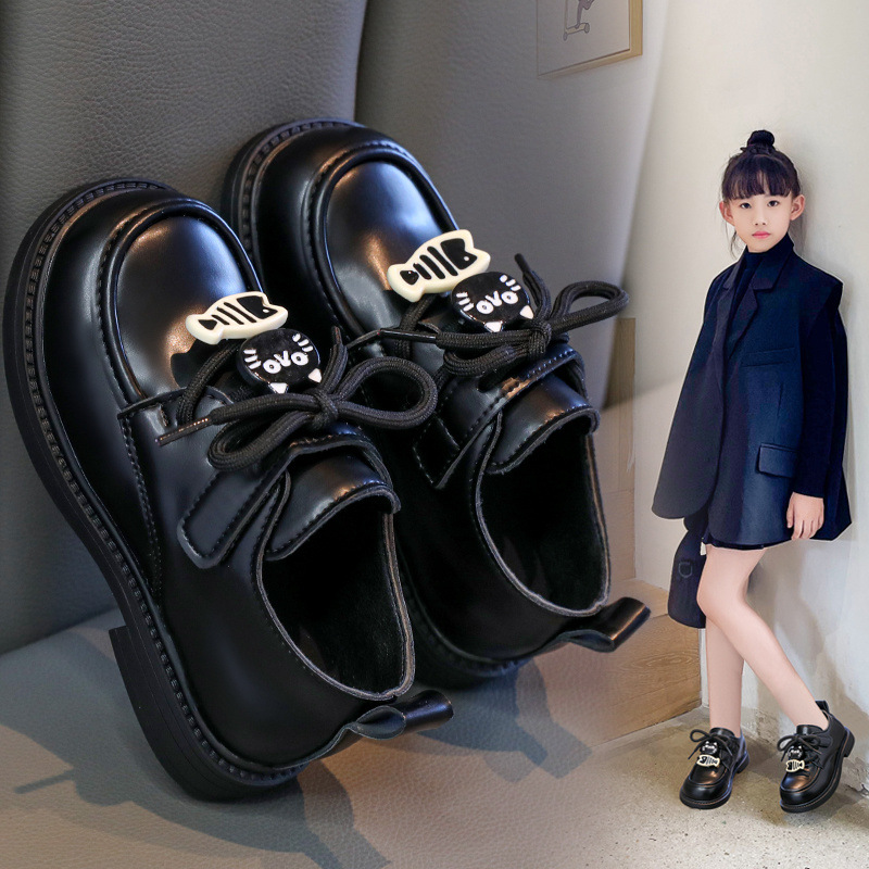 男の子の小さい靴の春と秋の2024の新型の韓国版の英倫風の黒色の柔らかい底の子供の靴の小学生は靴を演出します。