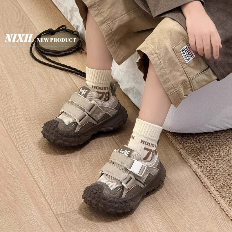 秋の2024年の新型のマジックテープのドリアンの底のタイヤの子供の靴のおじさんの男の子の女の子は街の男の子を揚げて登山します。