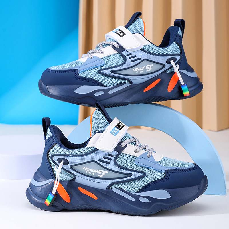 子供の靴の男の子の運動の春と秋のネットの面の新型の2024の通気性の運動靴の中で大きい子供の男の子の軽いランニングシューズ