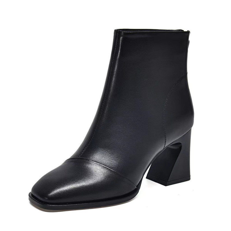 柔らかい皮の角の頭のショートブーツの女性の太さと春と秋の単靴の2024秋冬の新型の英倫の靴の百合のハイヒールのマーティンの靴