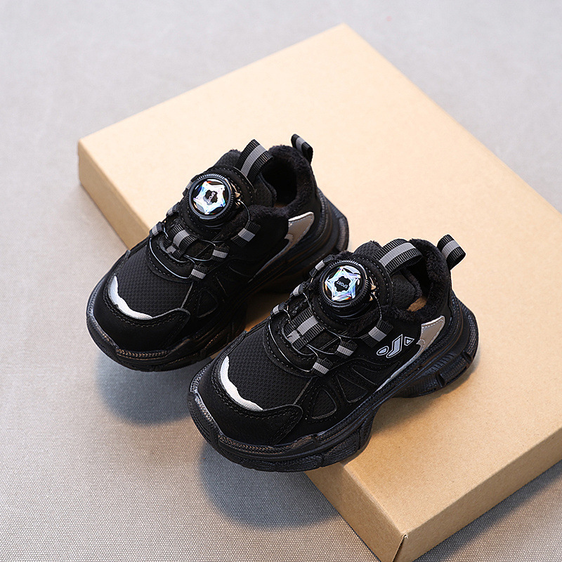秋冬の子供の皮の男の子の靴2024の新型の回転はランニングの薄い絨毛のお父さんの女の子の柔らかい底の運動靴を掛けます。