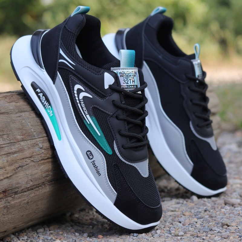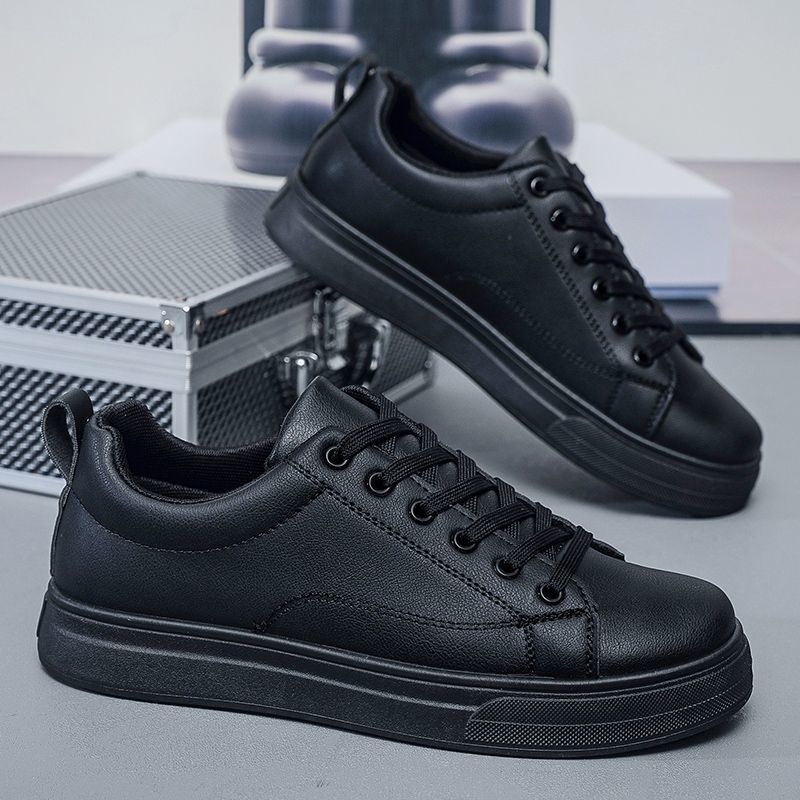 新しい男性靴通気防臭カジュアルスポーツシューズの革面滑り止め靴防水耐摩耗性の厚い底の黒い靴男