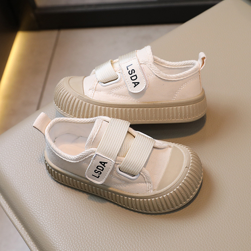 2024春秋タイプの柔らかい底の靴の子供のキャンバスの靴の女の子の赤ちゃんの通気性のビスケットの靴の白い靴の学生の靴の潮