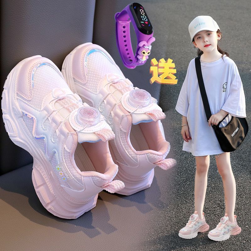 女の子の運動靴の秋の新型の小学生の靴は合わせて通気性の子供のランニング靴のネットの女の子の王女の靴を配合します。