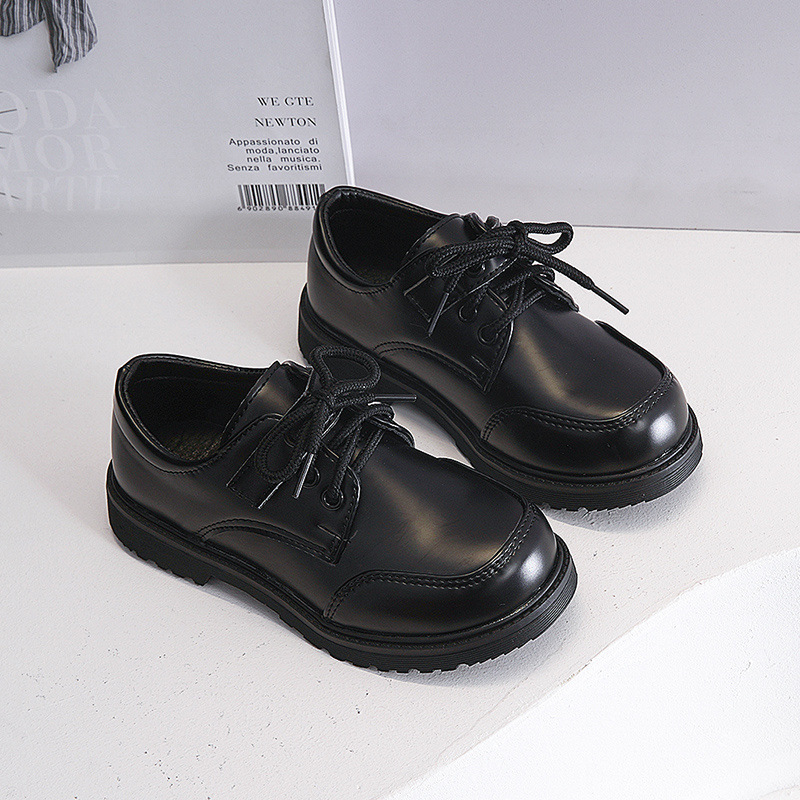 子供の靴の男の子の靴の春と秋の2024の新型の韓国版の英倫風の黒色の柔らかい底の小さい男の子の学生は靴を演出します。