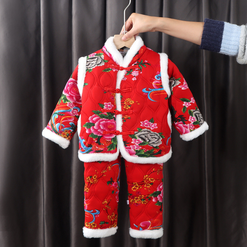 子供用綿服セット赤ちゃんの新型東北大花上着冬服男女子供の外には砕花家の綿入れを着ている