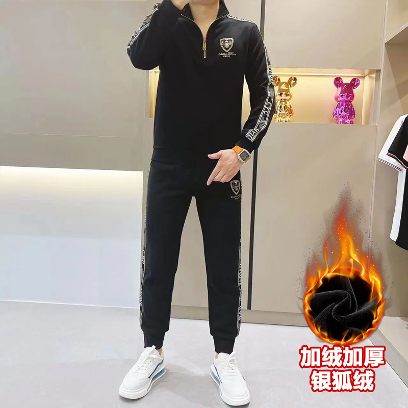 男性の秋冬の新型カジュアルファッションのかっこいいスポーツウェアをセットにしたゆったりとした2枚セットの服
