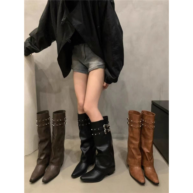 高品質弾力ブーツ2024年新型春秋ファッション平と単靴が痩せているブーツの女性ブーツ