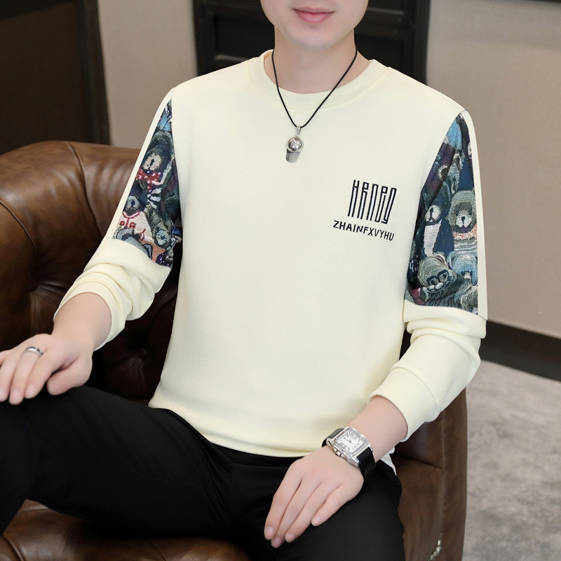 男性の秋冬モデルの中で青年丸首長袖tシャツカジュアルな服装