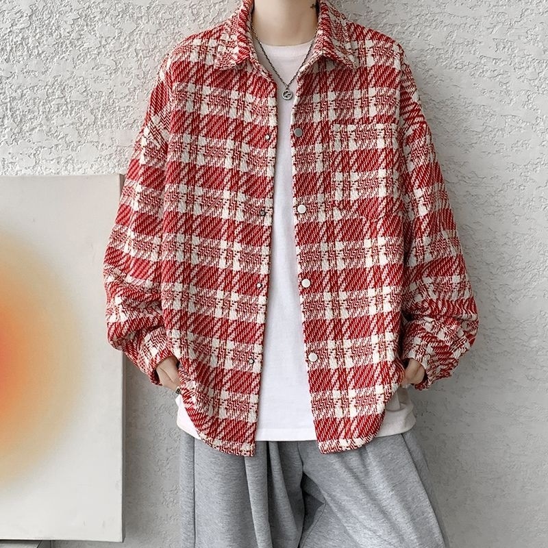 小香風コート男性格子春秋新中国式百合ニットトレンドゆるいジャケット上着