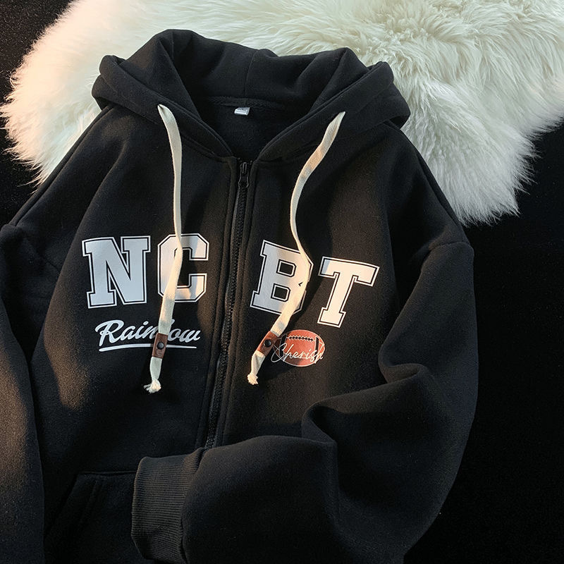 アメリカのジッパーの男性の秋冬の帽子の新型2023のファッションのゆったりしたベルベットの厚いカーディガンのジャケットのコート