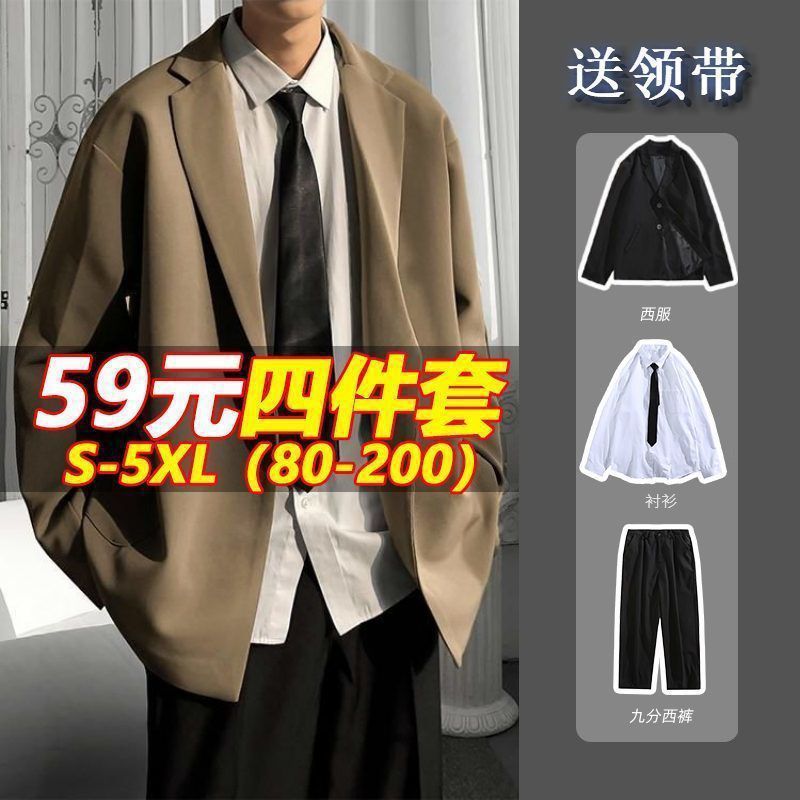 春と秋のコートの男のジャケットの青少年の工装の韓国版のスーツの2023の新型のファッションの格好が良くて緩い2つのセット