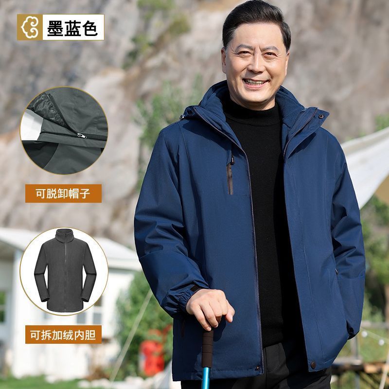 中年のお父さんの突撃服の男性のベルベットの金は三合一のおじいさんの上着の中の高齢者の春秋服のコートを取り外します。