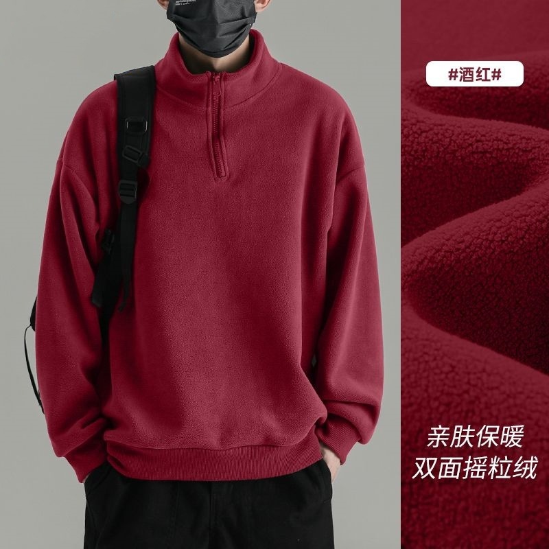 半ファスナーのフリースの襟の上着とベルベットの保温性の高い襟の長袖の男性の両面のベルベットのシャツの男性