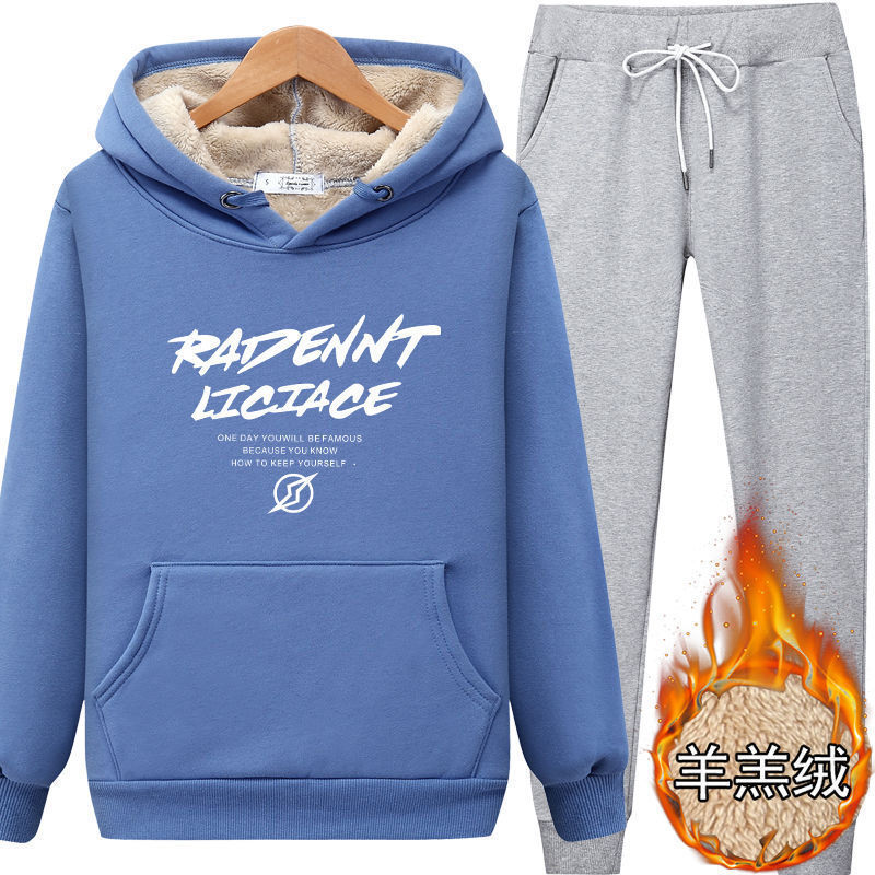 金のベルベットのスポーツスーツ秋冬の新型韓国版のベルベットは青少年の両面のベルベットの保温レジャースーツを厚くした