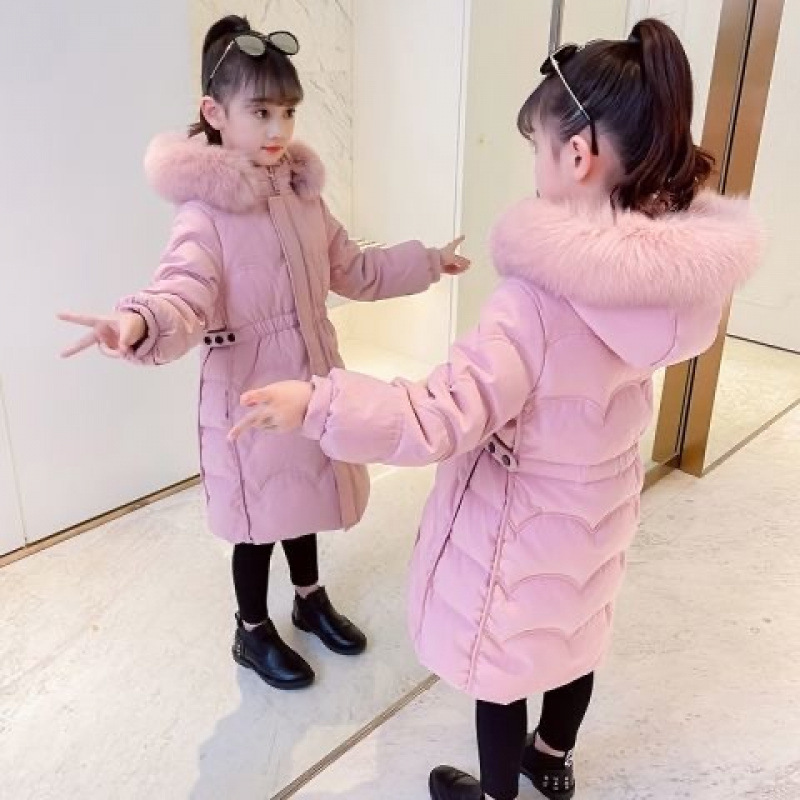 女の子の綿服2024年冬の新型は、中長の綿入れの上着の中の子供の洋風冬服ダウン綿入れの服を厚くした