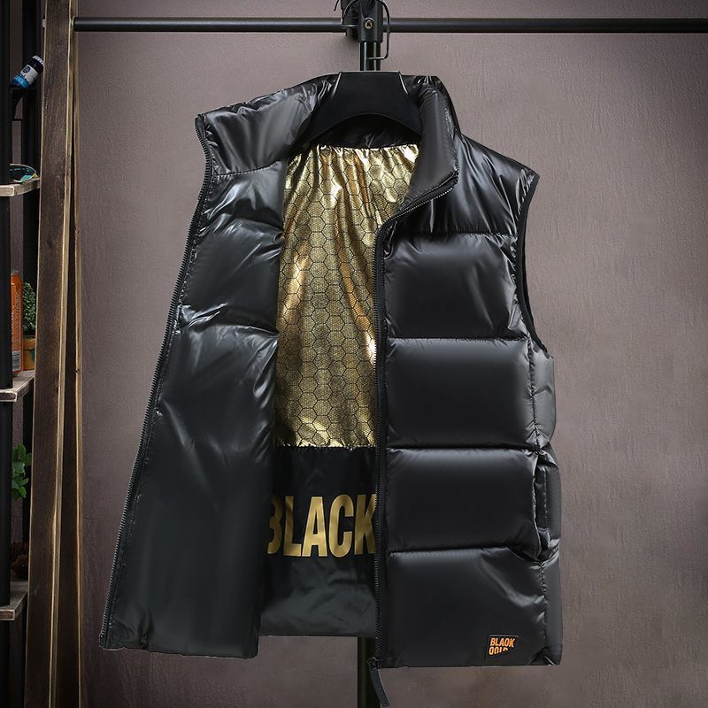 羽毛の綿のベストの男性の秋冬の韓国版の馬は厚い保温のベストの大きいサイズの格好いい襟の肩のコートを挟みます。