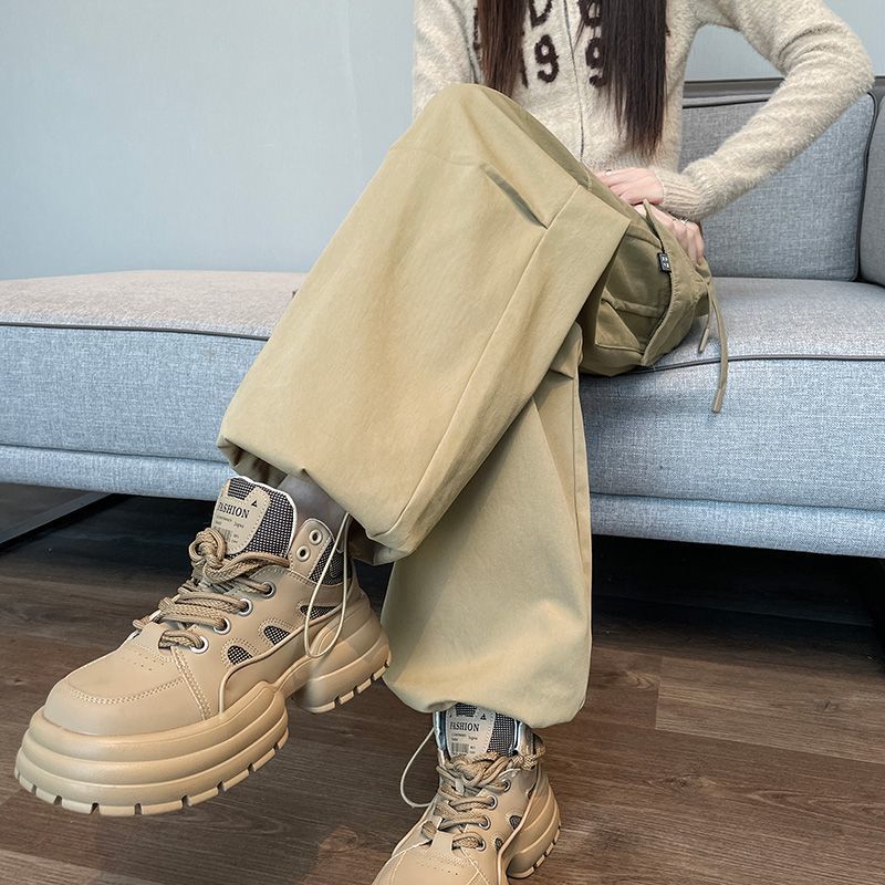 レトロなアメリカの工装ズボンの女性は冬に2024の新しいベルベットを着てファッションを厚くした