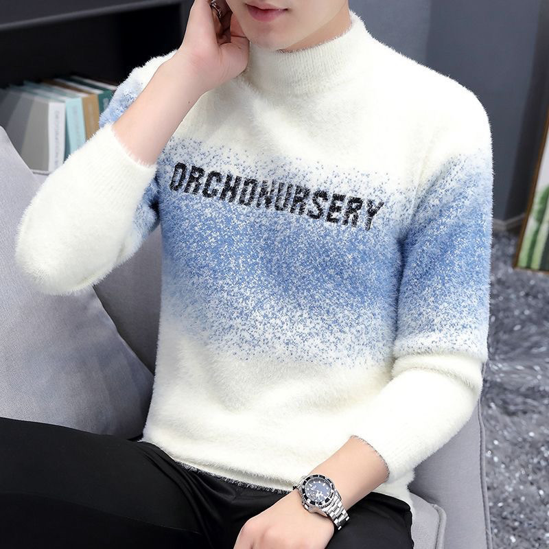秋の冬はミンクの毛のセーターの男性の青少年の半高襟のニットの底のシャツの潮流をまねます。