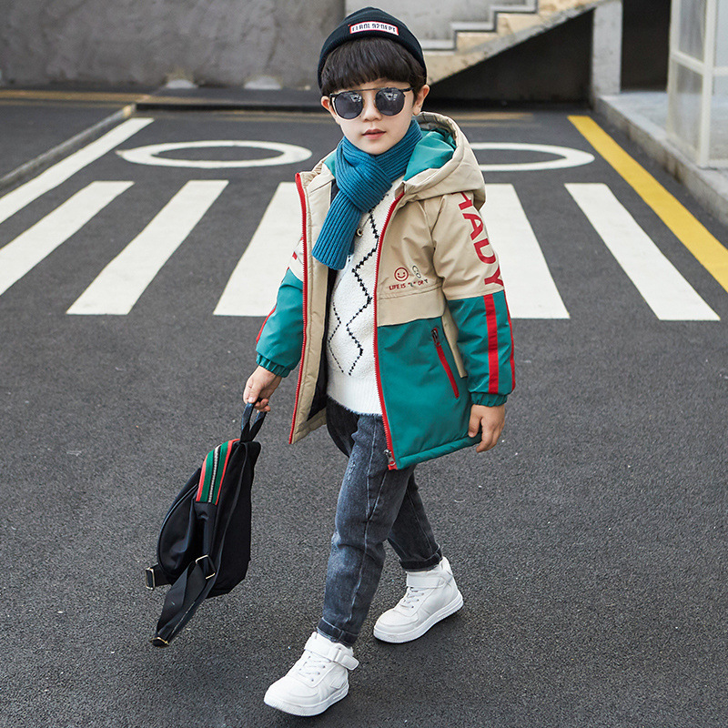 男の子の厚手のコート秋冬の綿の服の中の子供のファッション的な冬の服の韓国版のカジュアルな中の長いタイプの洋気の綿入れの服のファッション