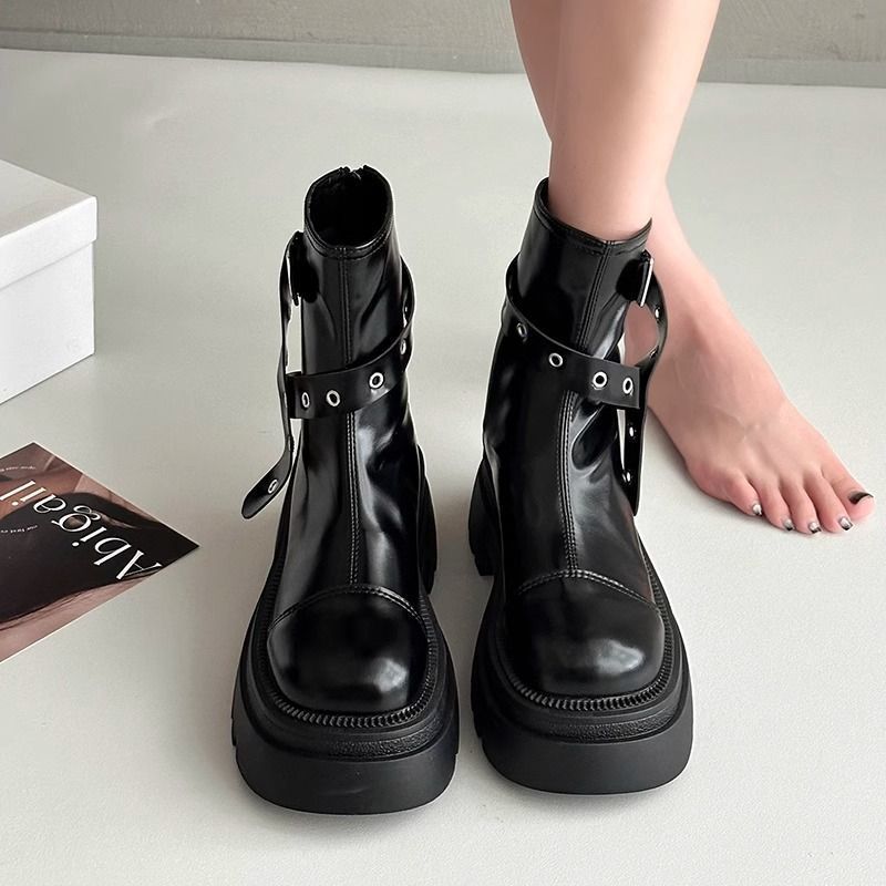 洋気の薄いファッションの靴のショートブーツの女性のファッションの百合の2024秋の新型の復古は明らかにやせて高くなって街のマーティンの靴を揚げます。