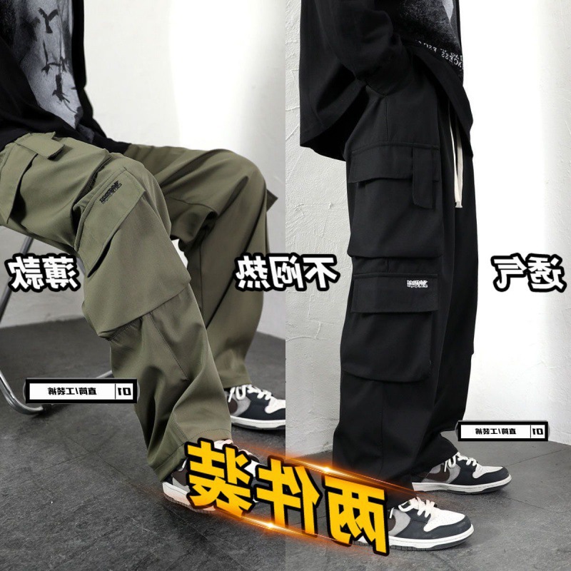 夏の薄いタイプのゆるいストレートカジュアルなズボンのアメリカのレトロなファッションのズボンのポケットの耐摩耗性の工事現場の工装のズボンの男性6