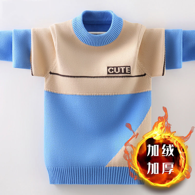 【ベルベット/ベルベットなし】男児セーターニットの大童洋気韓版ベルベットは秋の冬服を厚くしている