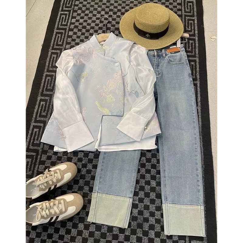 新中国式スーツ2024新型国風禅意女装名媛気質高級感シャツ馬甲二点セット6