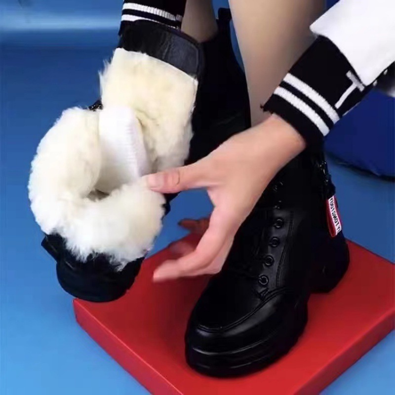 真皮ウール雪地靴毛皮一体ベルベット保温綿靴冬のマーティン靴女の中に厚い底の皮が高くなった6