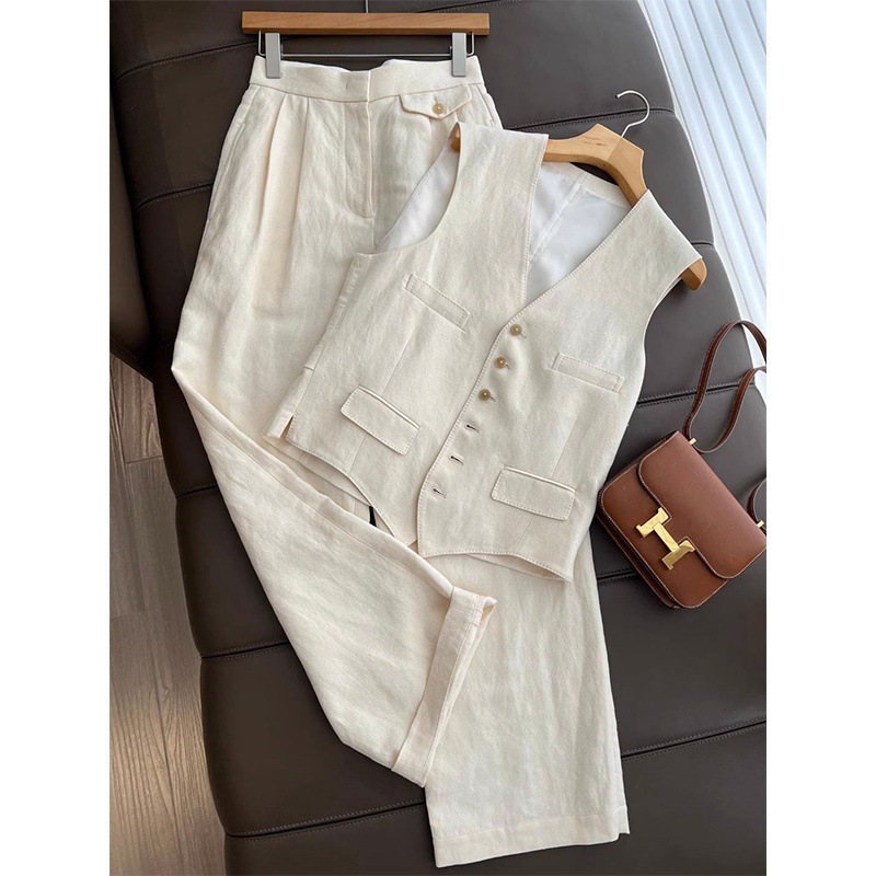 2024年夏の新型韓国版ファッションデザインセンス気質セット馬甲広脚ズボン2点セットins風6