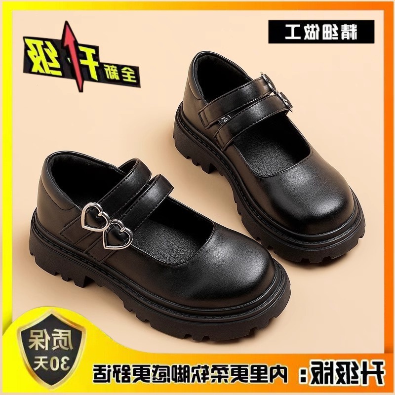 女の子の靴2024春秋の新しい子供の演出靴の黒いダンスの靴の王女の靴の中で大きい子供の子供の靴6