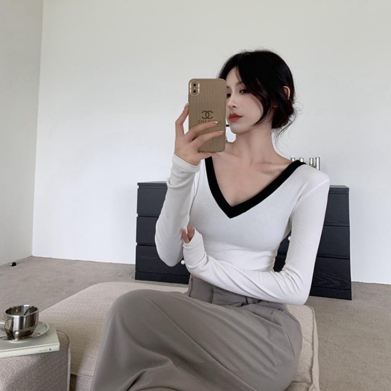 大きいサイズの300斤の底のシャツの女性の春と秋の内はやせている長袖のtシャツの太っているMM220の修身の短いvネックの上着を掛けます6