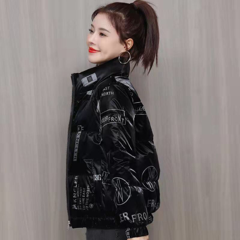 2024韓国版ファッション婦人服綿服コートの短いプリントの立襟は保温綿入れの上着の女性のファッションの新型を厚くします。