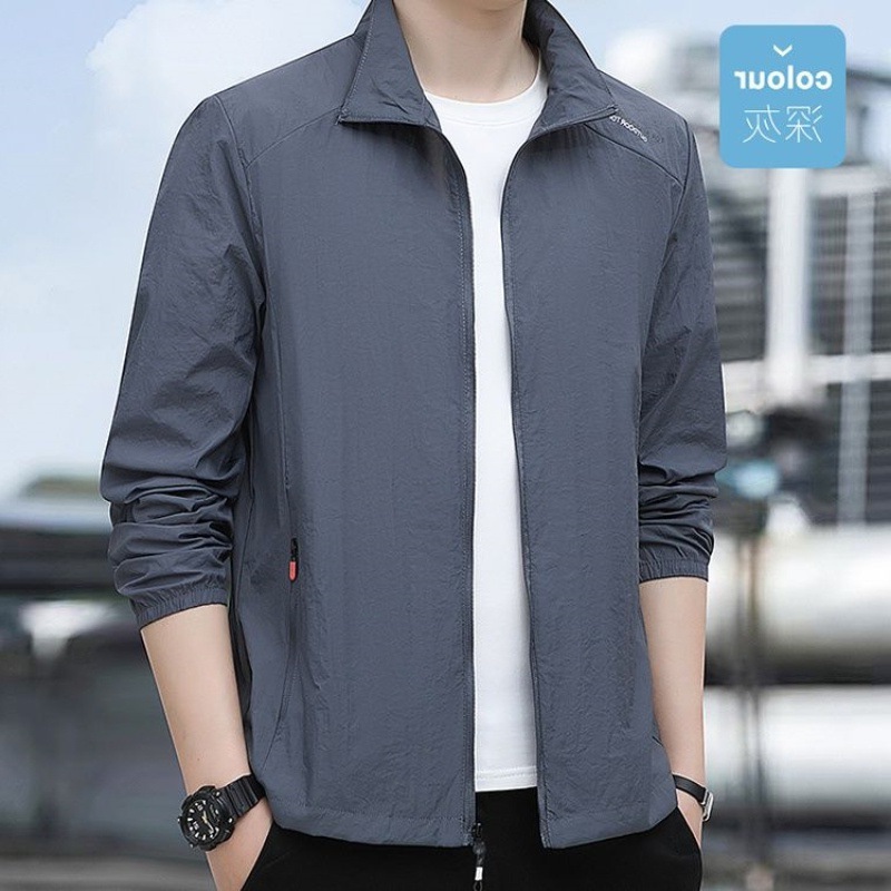 日焼け止め男性超薄皮膚夏通気速乾外着コート屋外格好いい立襟アウトドアスポーツ外6