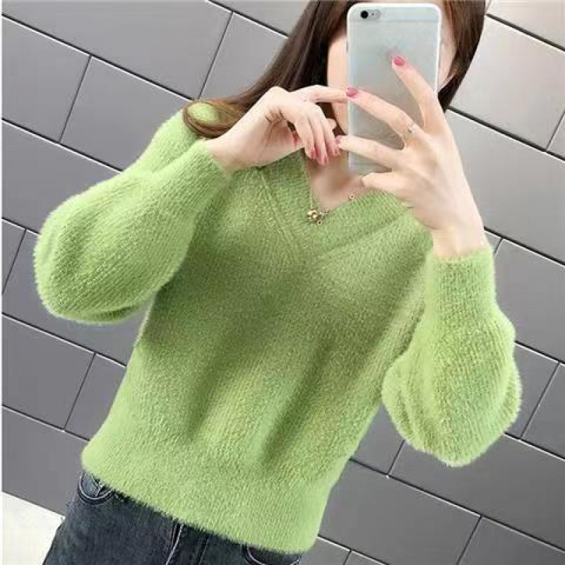 ニットの底のシャツ2022の新型のセーターの女性はゆったりしていて怠惰な風の中で洋気の鶏の心の襟の頭の金のミンクの毛を掛けます。