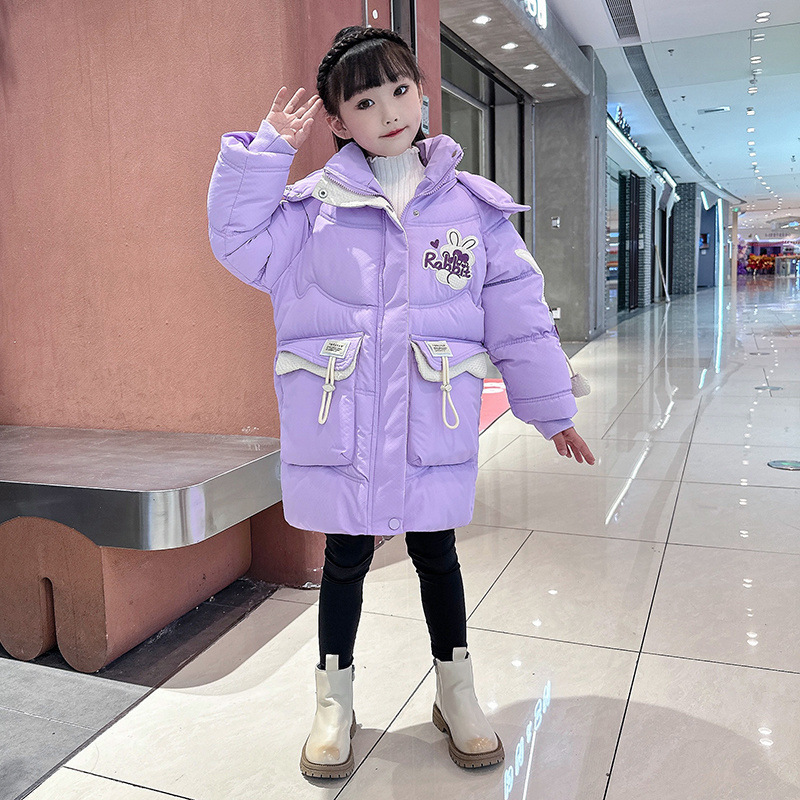 新型2023韓国版のファッションの女の子のダウン綿の綿服は防寒保温の中で大きい子供のベルベットの厚いコートを厚くします。