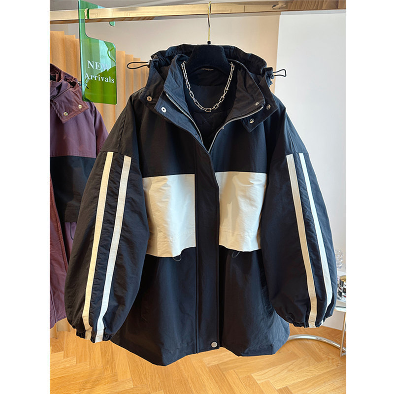 新商品のゆったりとした厚い紫色のパーカー服と帽子の工装綿服の女性の中の長いタイプの冬の洋気は綿のコートを挟んで潮があります。
