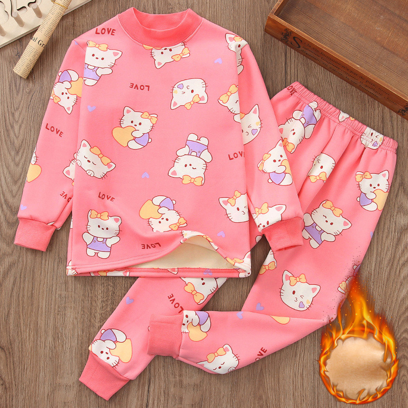子供用保温下着セット男の子用ベルベット厚手の中の子供の冬の底付き保温セット女の子用パジャマ