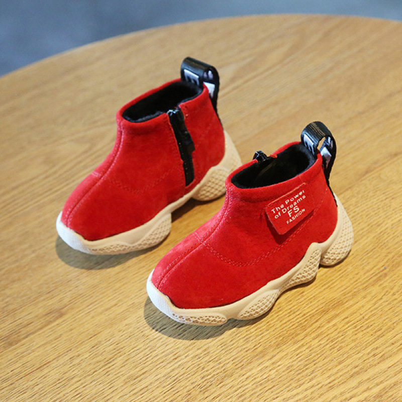 温州の子供靴秋の冬の新型の本革の子供の綿の靴の男女の赤ちゃんは綿の保温靴の子供の運動の綿の靴をプラスします。